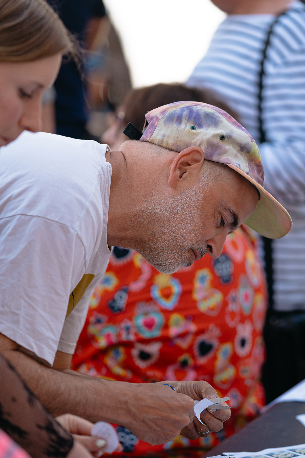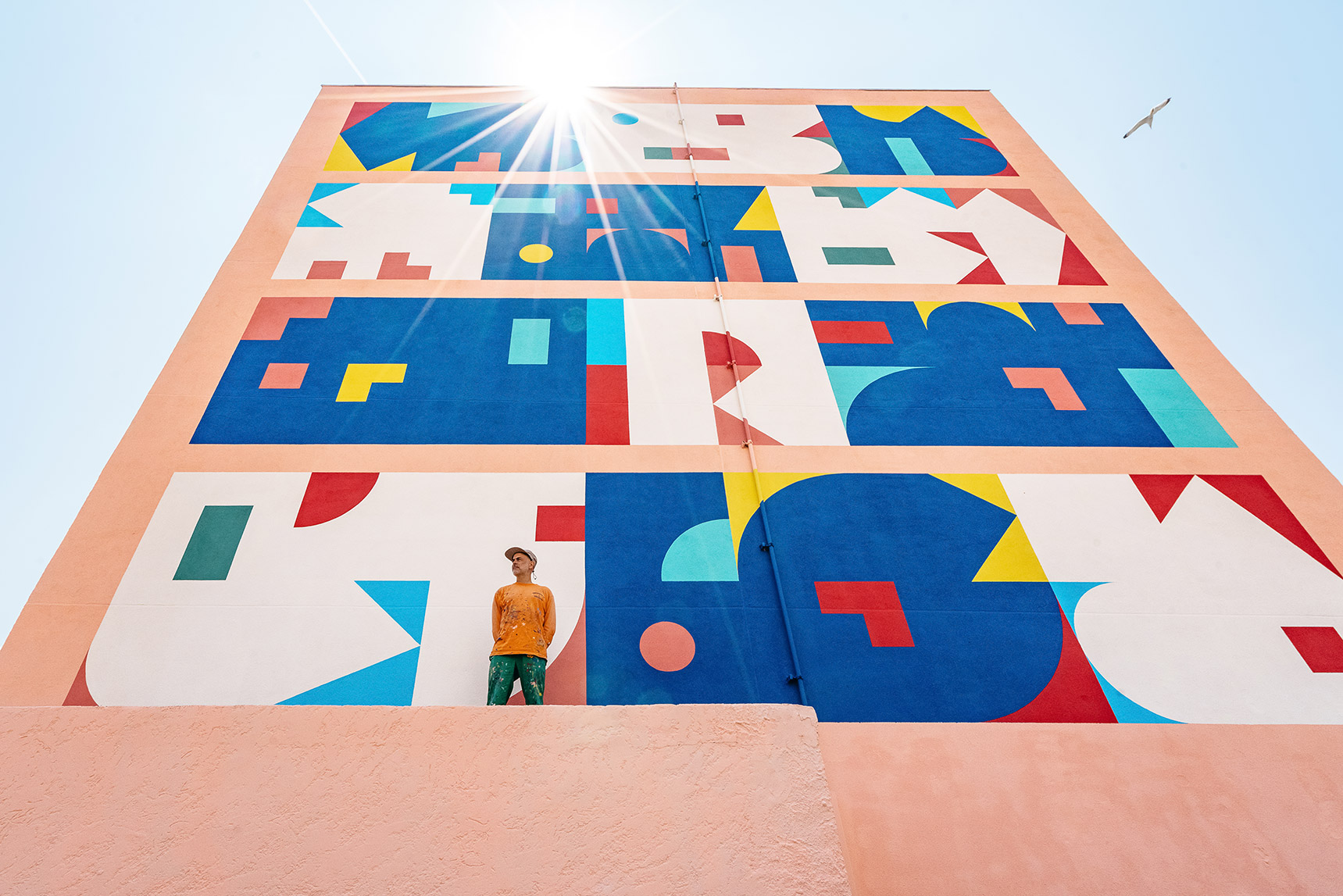 Né à Paris en 1975, Eltono est un street artist reconnu pour ses œuvres géométriques et abstraites. Il mêle techniques traditionnelles et modernes, comme l’utilisation du ruban adhésif et de la peinture acrylique, pour créer des motifs colorés. Son travail, souvent génératif, explore la spontanéité des espaces urbains et se déploie directement dans l’environnement public.